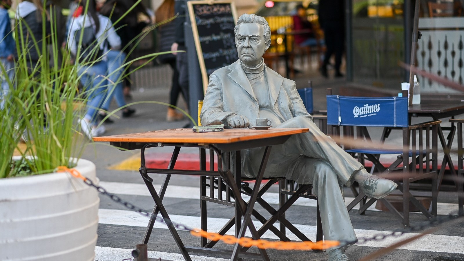 Ni tomando un café en la esquina del Sorocabana, en carne y huesos, ni convertido en estatua con su café sobre la mesa y su mirada perdida.