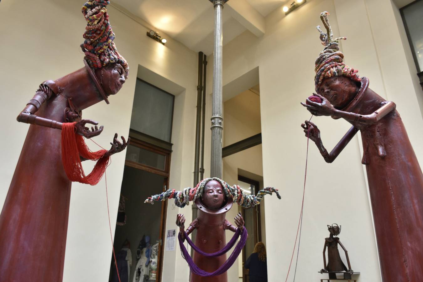 Por otro lado, Silvia Carballo trabaja con residuos industriales para pensar el monte nativo, mientras que Elisa Bisaro indaga en la herida de los cuerpos femeninos a partir de metal reciclado.